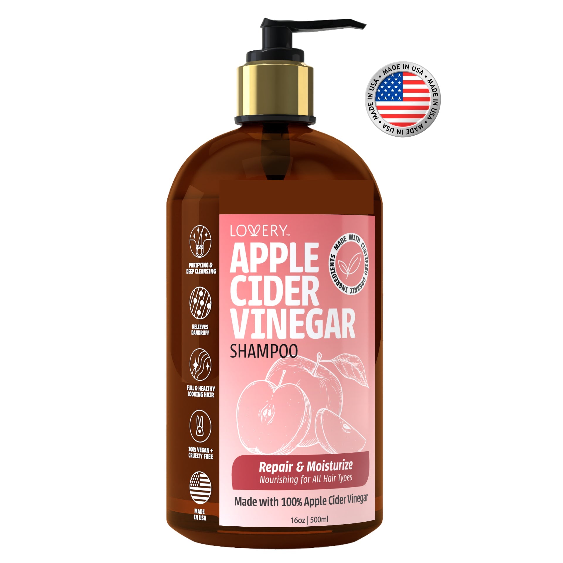 - The Apple Cider Vinegar hair care shampoo helps fight dandruff and scalp build-ups, while also moisturizing and hydrating the hair, leaving it feeling healthy and refreshed. Formulated with a cocktail of essential oils composed of raw apple cider vinegar, vitamin e, aloe vera, jojoba oil. They are known for soothing properties and constitute an anti breakage complex of the hair fiber for repaired hair. If you need assistance in keeping dandruff at bay, strengthening your roots, and getting that pesky scalp out of your life for good, then this Apple Cider Vinegar Shampoo should be your go-to choice. Raw Apple Cider Vinegar restores skin’s normal Ph. A replenishing detox that helps remove sebum and clears dead skin cells for a deeper cleanse.