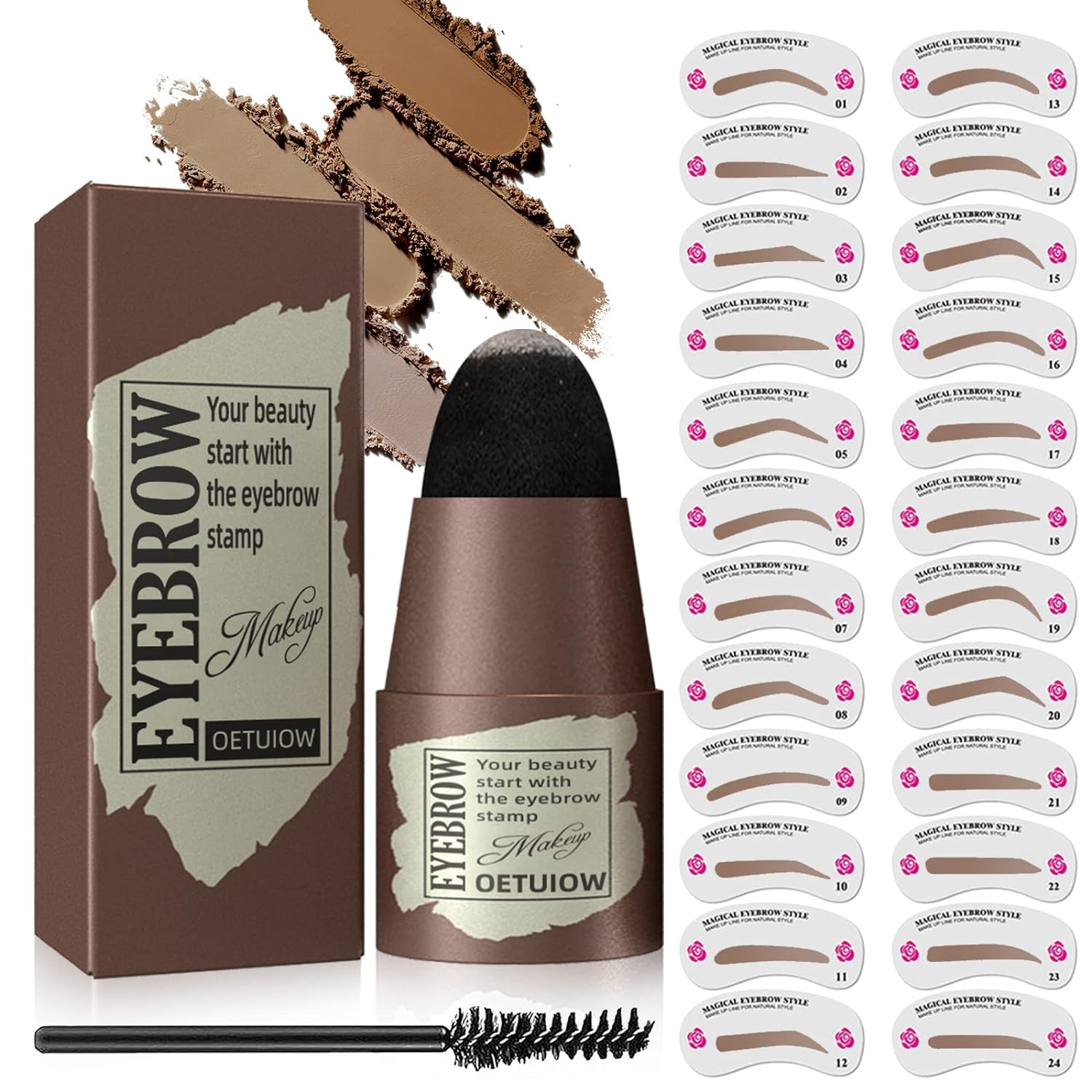 Eyebrow Stamp Stencil Kit - One-Step Eye Brow Stencil Kit with 24 Reusable Thin & Thick Eyebrow Stencils, Long-Lasting Waterproof & Smudge-Proof Brow Stamp Kit for Perfect Eye Makeup Black Brown