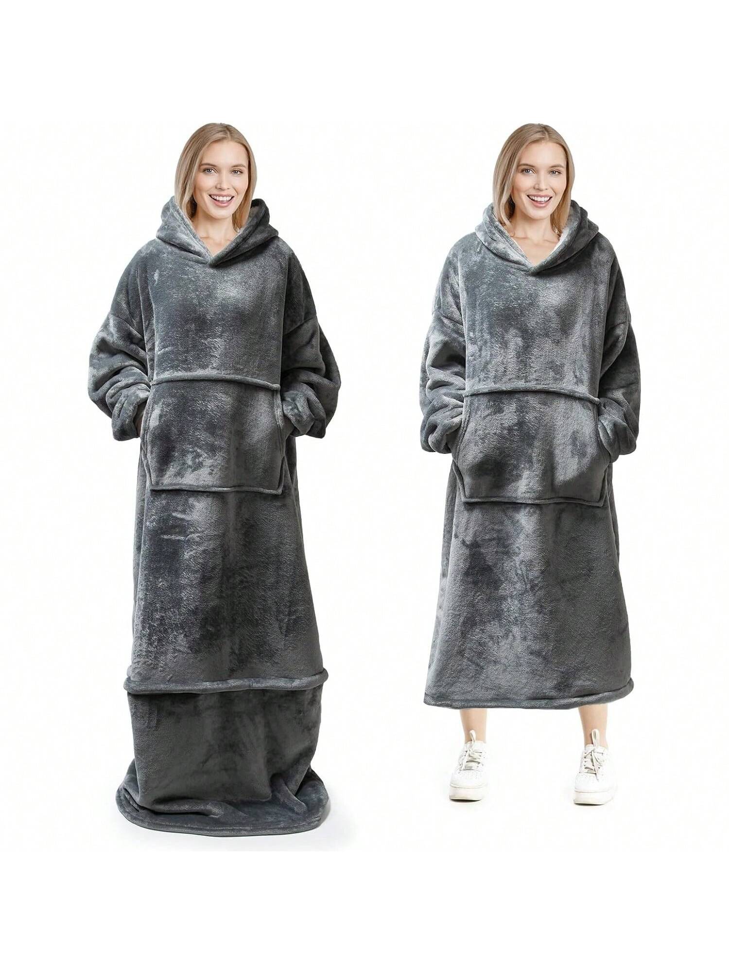 Homehours Wearable Blanket Hoodie,Oversized Adjustable Length Cozy and Warm Hooded Blanket for Women Men Adults Gifts with Giant Pocket and Sleeves,One Size Fits All,Dark Grey