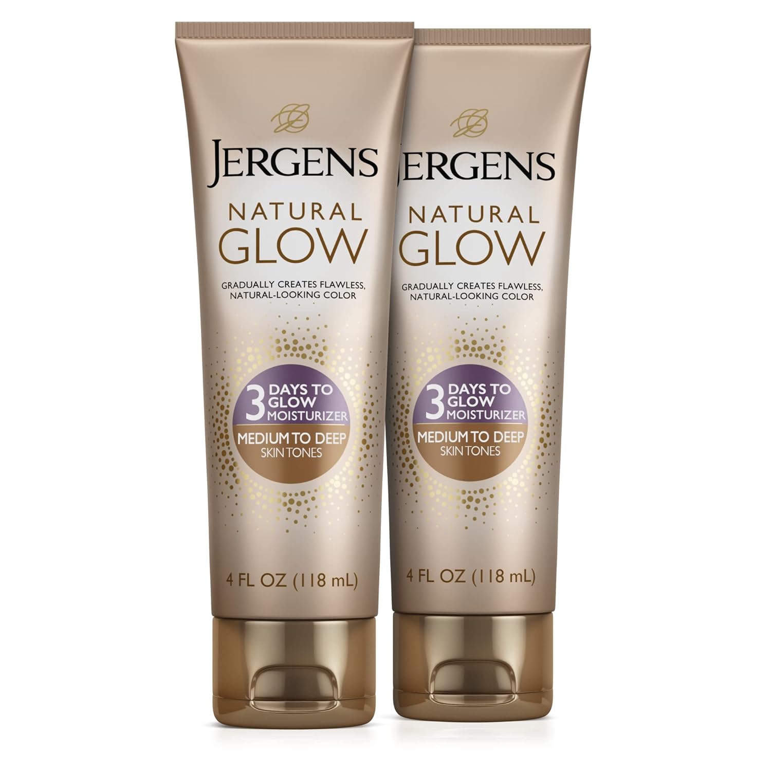 Jergens Natural Glow 3-Day Self Tanner Body Lotion, Sunless Tanning Moisturizer for Medium to Deep Skin Tone, for Streak-free Color, 4 Fl Oz (Pack of 2)