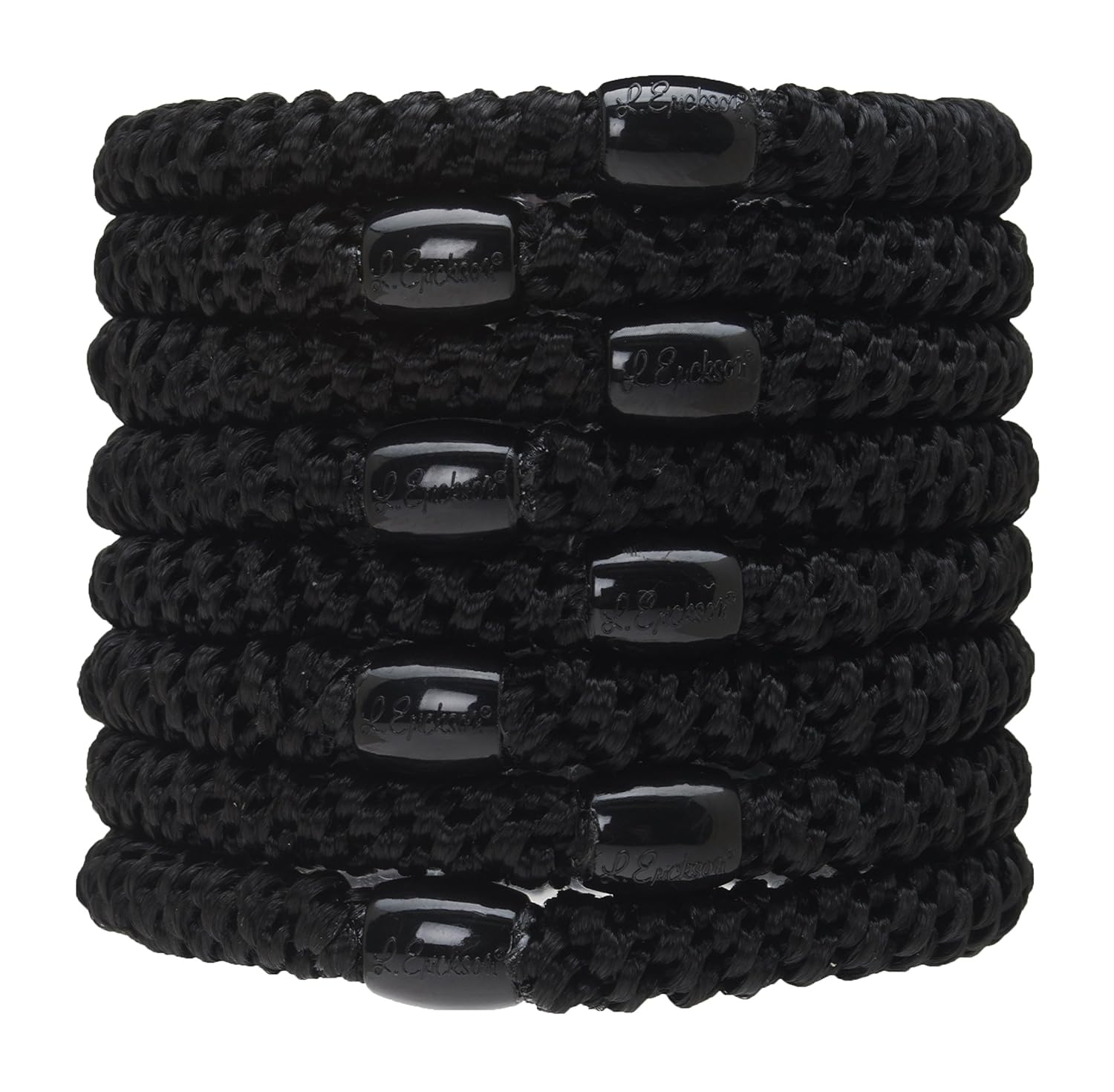 L. Erickson Grab & Go Ponytail Holders, Black, Set of Eight - Exceptionally Secure with Gentle Hold