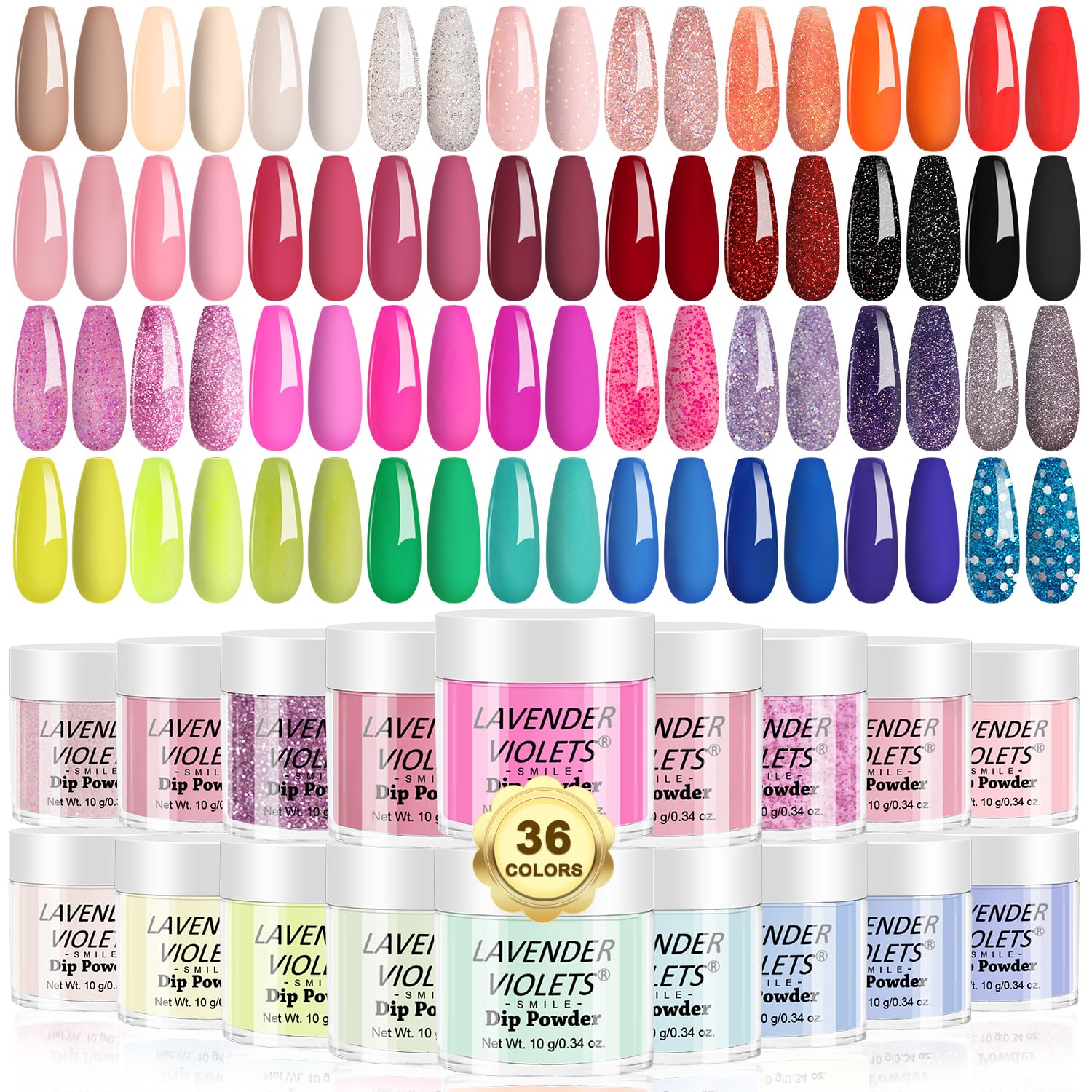 Lavender Violets 36 Colors Dip Powder Nail Kit Starter Quick Drying Dipping Powder Color Set for Home Salon Nail Art Designs M950