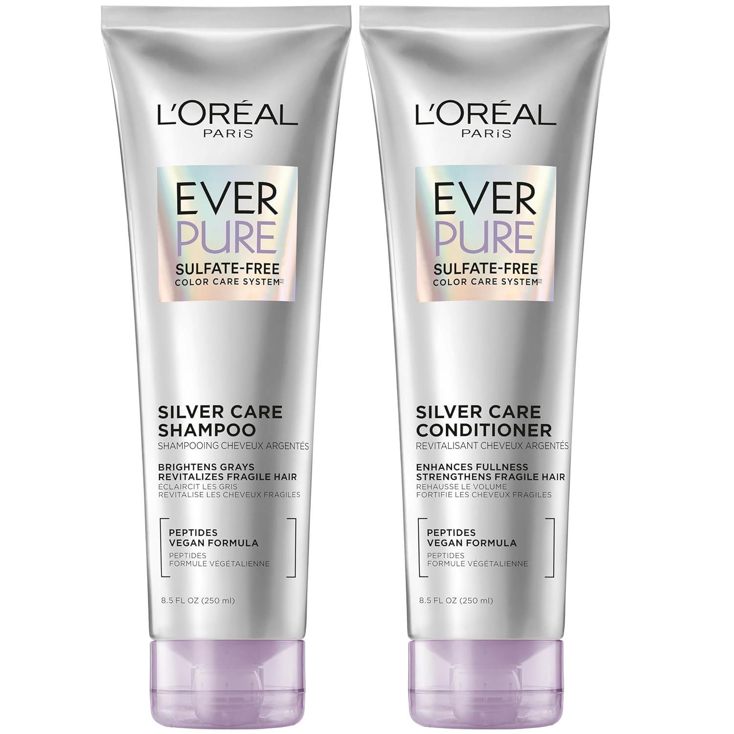 L'Oreal Paris EverPure Silver Care Shampoo and Conditioner Set, Brightening and Nourishing Sulfate Free Hair Care for Gray and Silver Hair, Vegan Formula with Peptides, 1 Kit
