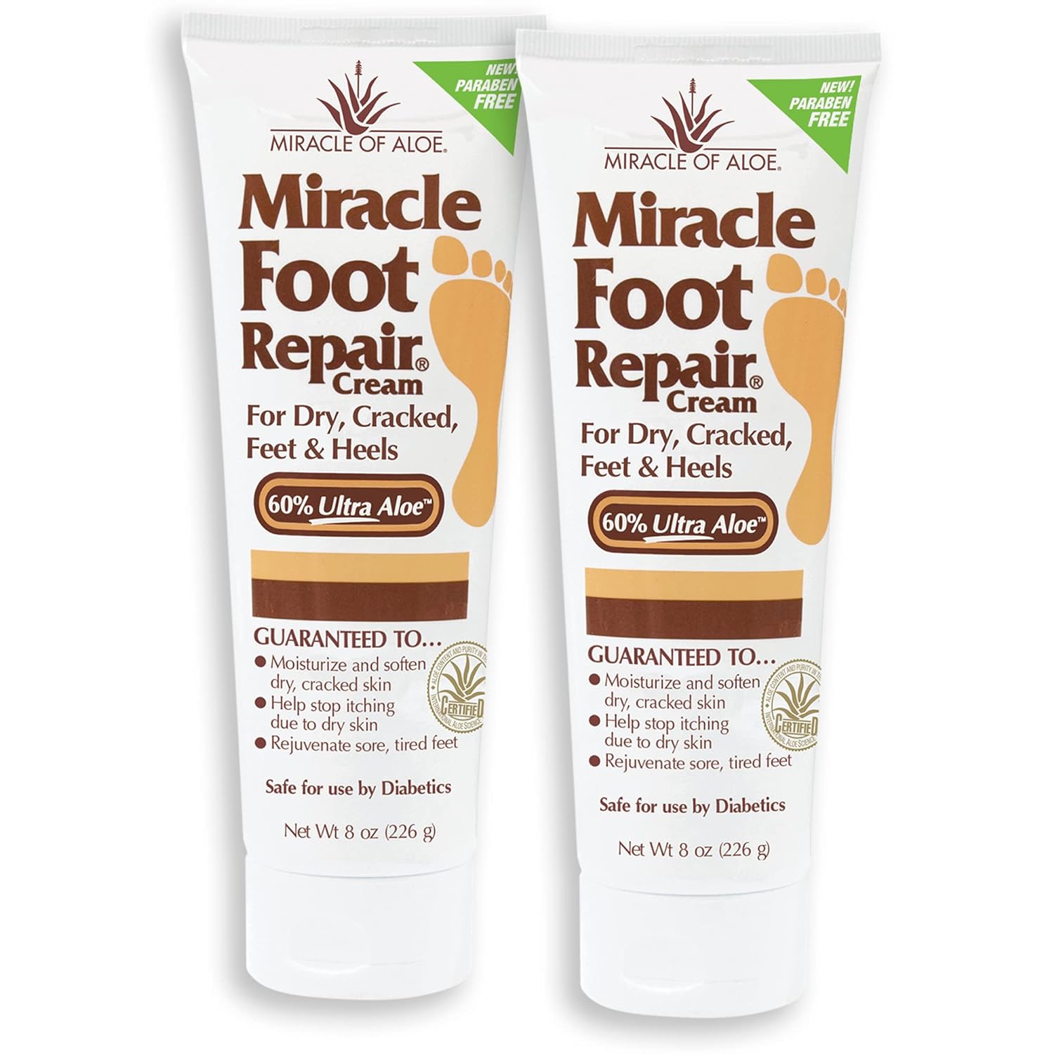 Miracle Foot Repair Cream, 8 oz Repairs Dry Cracked Heels and Feet, Diabetic-Safe, 60% Pure Ultra Aloe Moisturizes, Softens, and Repairs, Relief from Discomfort of Ingrown Toenails (2-Pack)