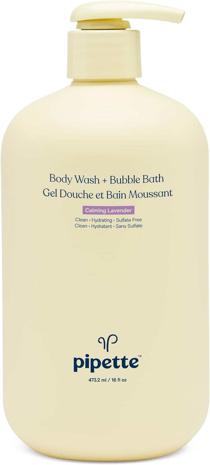 Pipette Bubble Bath + Body Wash - Nourishing and Skin Softening Tear Free Bubbles Fun, Suitable for Sensitive Skin, Calming Lavender Scented, 16 fl oz