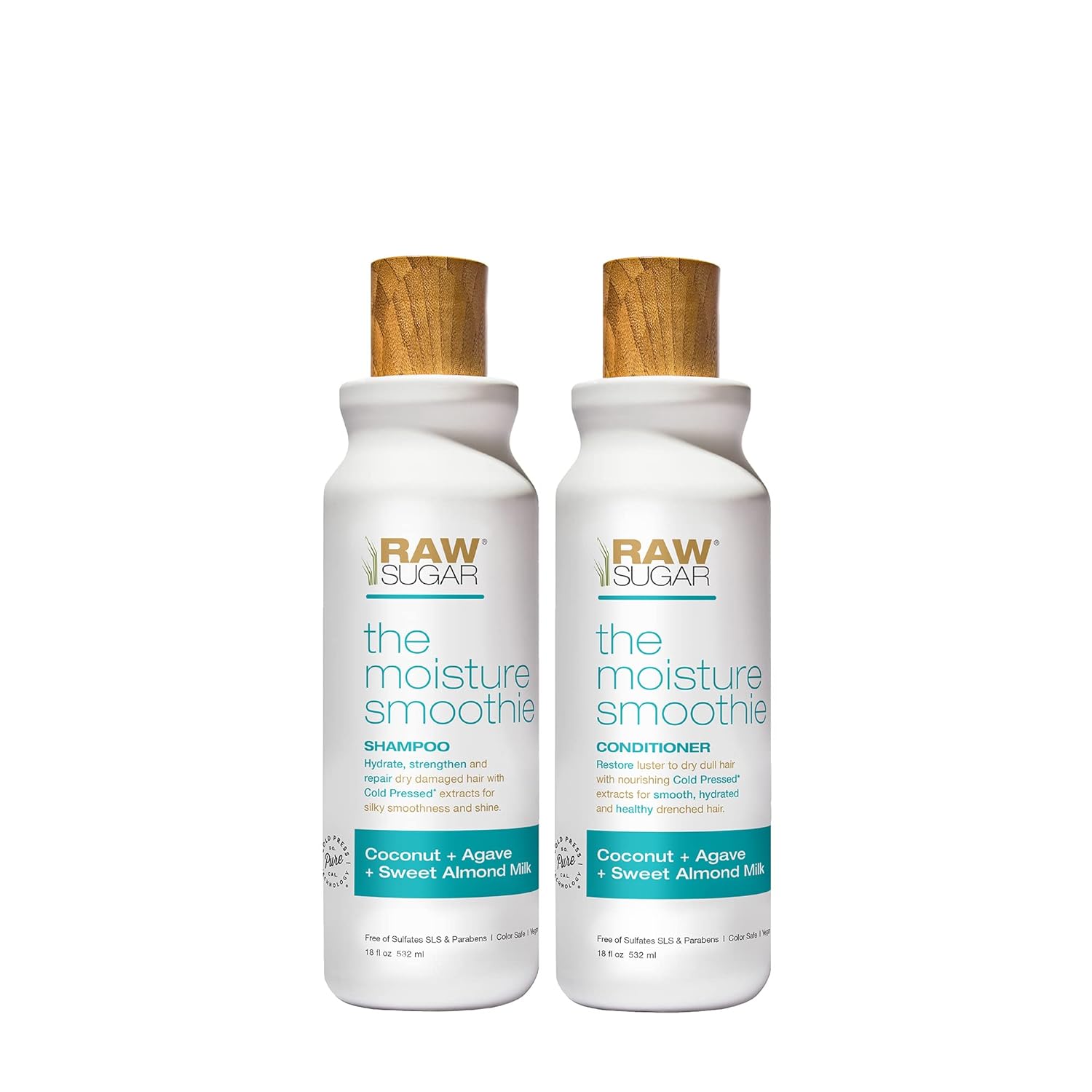 Raw Sugar Moisture Smoothie Shampoo and Conditioner with Coconut Oil, Agave, & Sweet Almond Milk, Hydrates & Nourishes Dry Hair, Formulated without Sulfates + Parabens