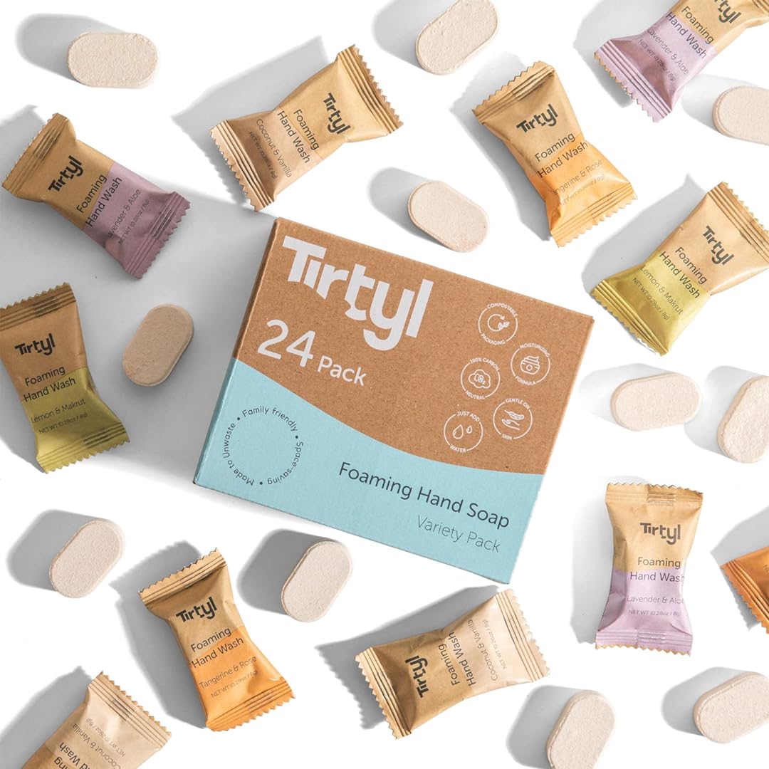 Tirtyl Foaming Hand Soap Tablet Refills - 24 Pack - 192 fl oz total (24x 8 fl oz) - NEW Formula - Compostable Packaging - Bulk Variety Fragrance Pack