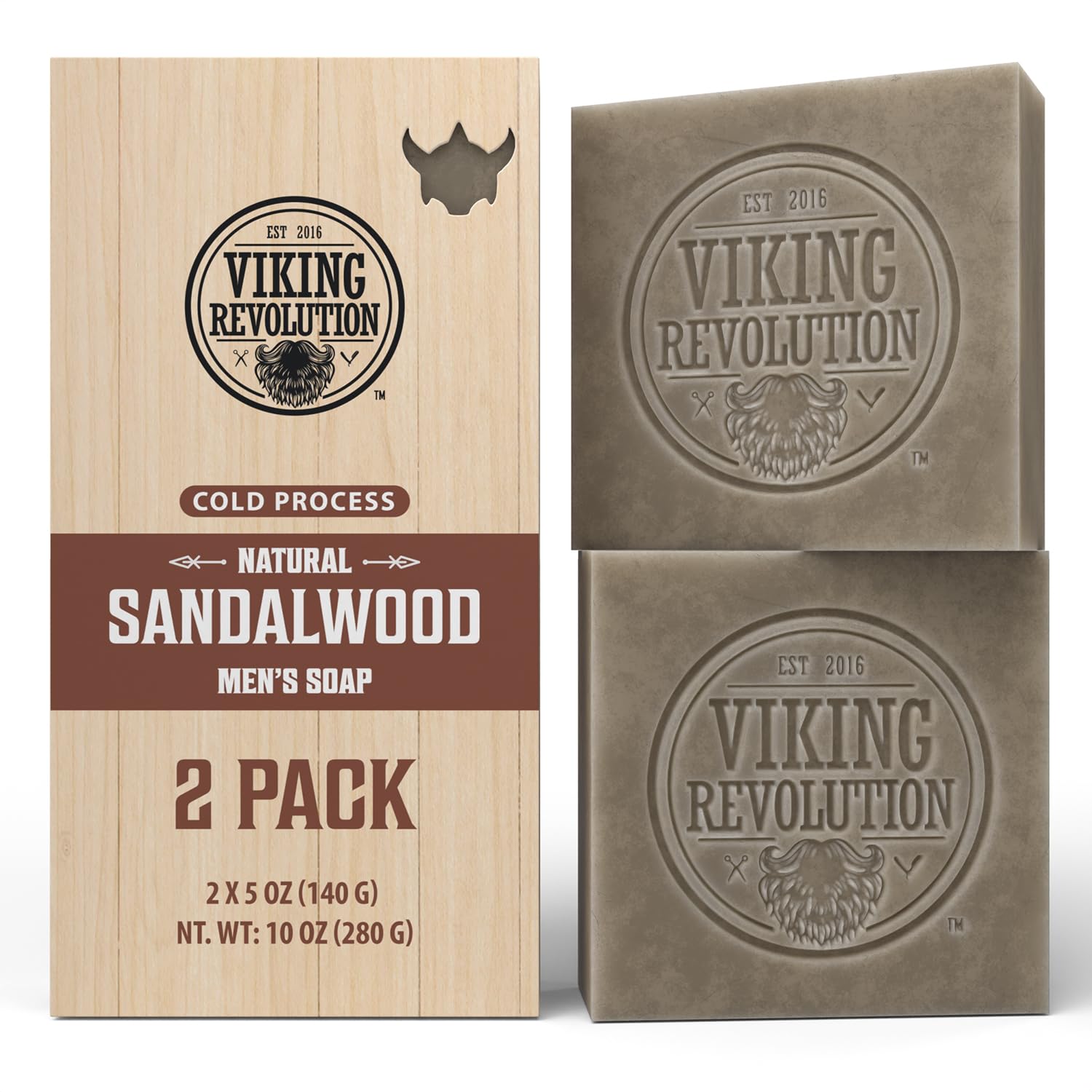 Viking Revolution Sandalwood Natural Soap for Men - Mens Soap Bar with Essential Oils Cold Pressed Bar Soap for Men - Nourishing Mens Bar Soap with Coconut Oil, Shea Oil, Almond Oil (2 Pack)