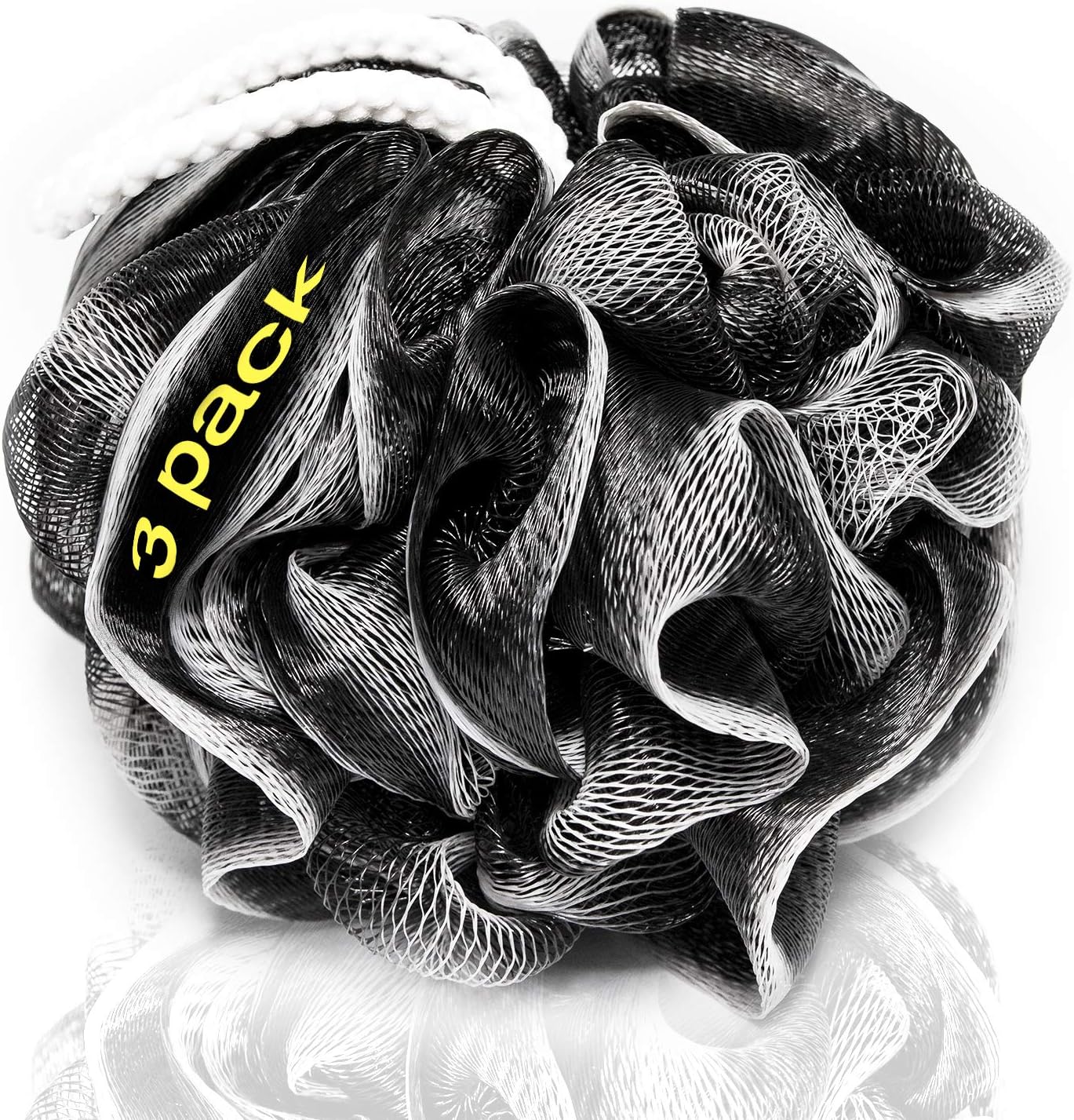 XXL 90g Charcoal Shower Loofah 3 Pack by Tilcare - Perfect Bath Sponge for Exfoliating for Men & Women - Body Scrubber Brush for Cleansing and Smooth Skin - Scrubbies That Remove Excess Oil and Dirt